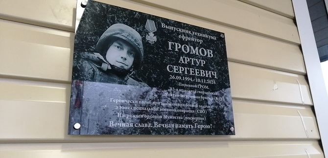 «Конечно, он достоин того, чтобы в его честь в техникуме открыли памятную доску, – уверена вдова Артура Алина Громова. – Я очень горжусь, что будет место, куда придут наши дети. Они тоже будут гордятся своим отцом. Здесь мой супруг учился, и пусть он будет примером для молодого поколения. Я считаю, что не должны забывать поступки и подвиги наших героев. Спасибо организаторам!»
